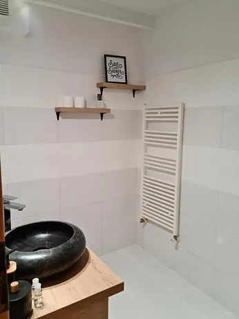 Cu un design modern acest apartament vine in intampinarea clientilor cu dotari de ultima generatie precum TV cu ecran plat cu canale prin cablu - digital , acces internet WIFI , bucatarie complet utilata cu vesela si frigider , expresor de cafea, masina spalat rufe.