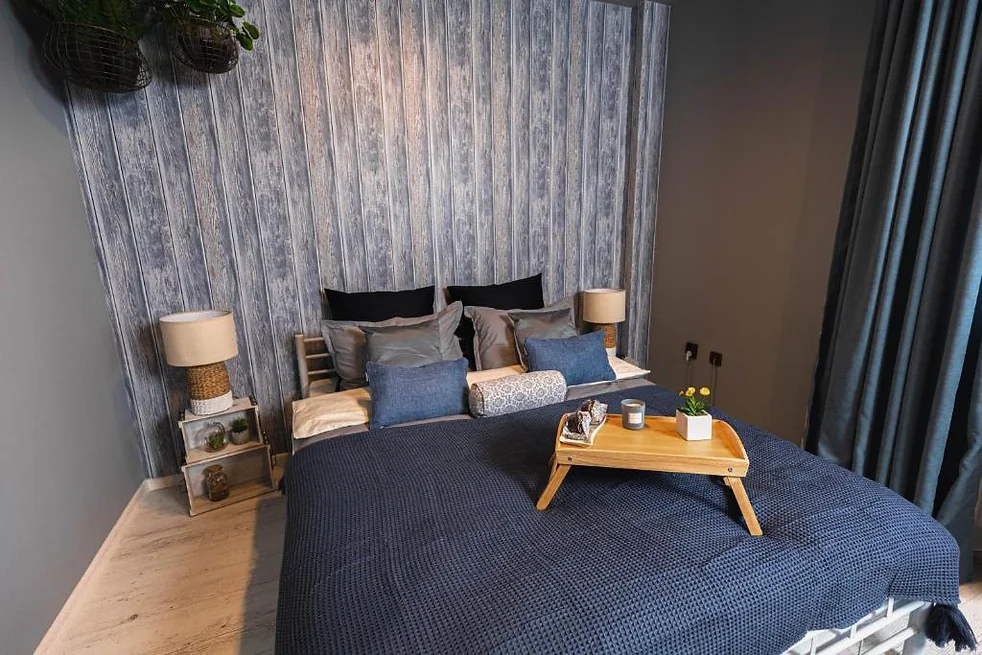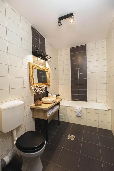 Cu un design modern acest apartament vine in intampinarea clientilor cu dotari de ultima generatie precum TV cu ecran plat cu canale prin cablu - digital , acces internet WIFI , bucatarie complet utilata cu vesela si frigider , expresor de cafea, masina spalat rufe.